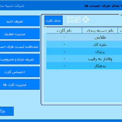 - امکان تعریف مزیت ها و محرومیت ها برای هر دسته از طرف حساب ها