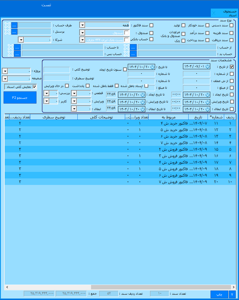 - با استفاده از دکمه + سمت راست شماره فاکتور و + سمت چپ شماره دوم فاکتور خود را تایپ کرده تا در لیست، مشخصات و جزئیات فاکتور را مشاهده کند.