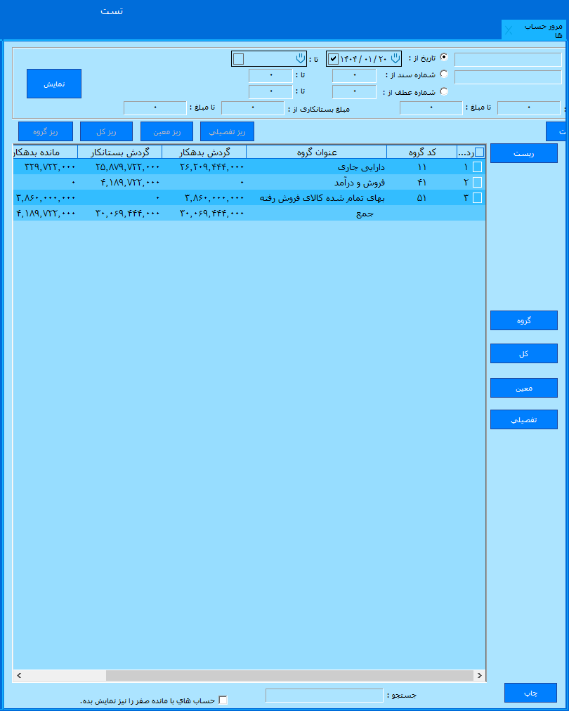 - در صورت تمایل به مشاهده ریز اقلام و خدمات می توانید از دکمه های لیست کالاها و خدمات در قسمت پایین لیست استفاده کنید.