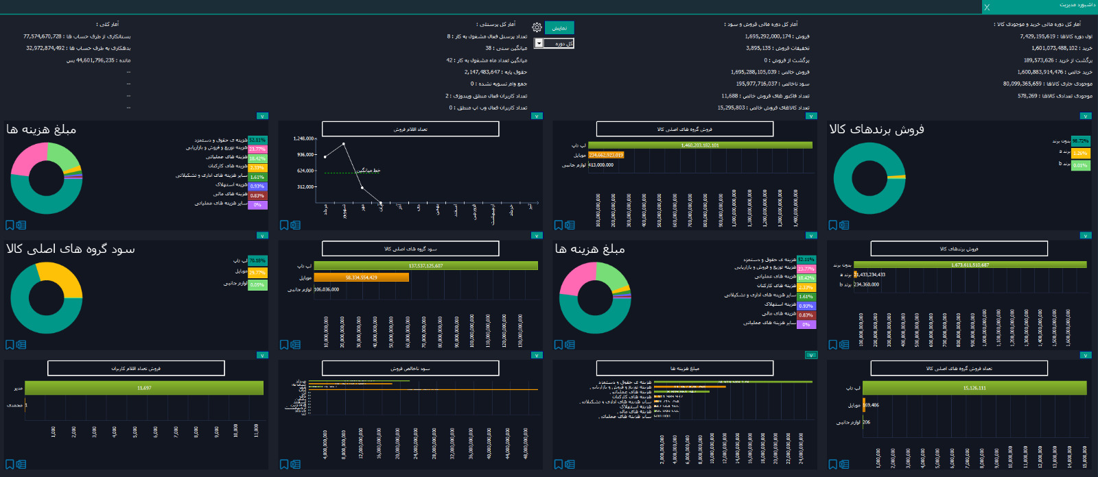 نرم افزار حسابداری شرکت ها و فروشگاه ها با امکان مدیریتی جدید و پیشرفته داشبورد مدیریت تکمیل تر خواهد شد.داشبورد مدیریت منطق به صورت اختصاصی برای مدیران مجموعهها طراحی شده است. این سیستم تحلیلی پیشرفته با قابلیتهای منحصر به فرد، دیدگاهی جامع و هوشمندانه از عملکرد مجموعه را در اختیار مدیران قرار میدهد و در واقع به مدیران امکان میدهد تا آمار کلی و نمودارهای تحلیلی را بهصورت یکپارچه و گرافیکی مشاهده کنند. این ابزار همراه با زیرسیستم هوشمند «منطقدان» ارائه میشود که امکان تحلیل دادهها و ارائه گزارشهای خودکار را فراهم میسازد.