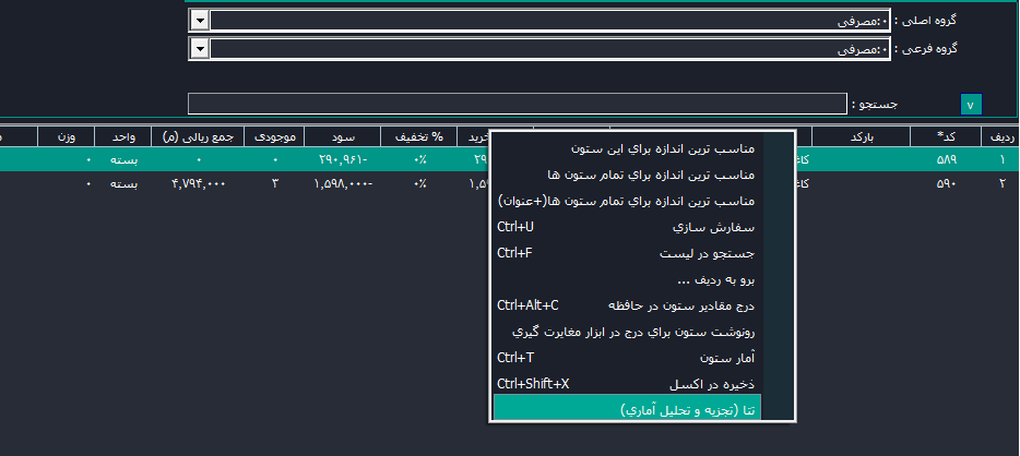 هر لیستی در هر پنجره ای از منطق را با یک دکمه به پنجره تتا ارسال کند (با کلیک راست روی سرستون هر لیست) :